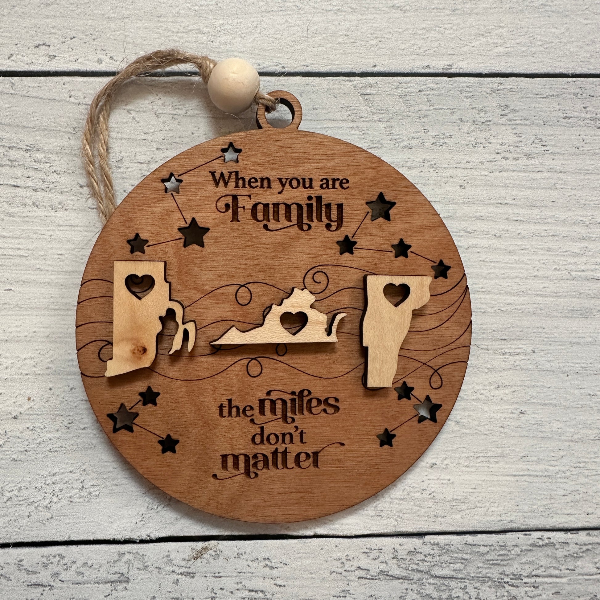 All United States states, all Canadian Territories, Select Caribbean and Select International territories are available and can fit up to four per ornament. If you need more than four please send us an email and we will do our best to make them fit!